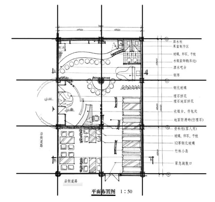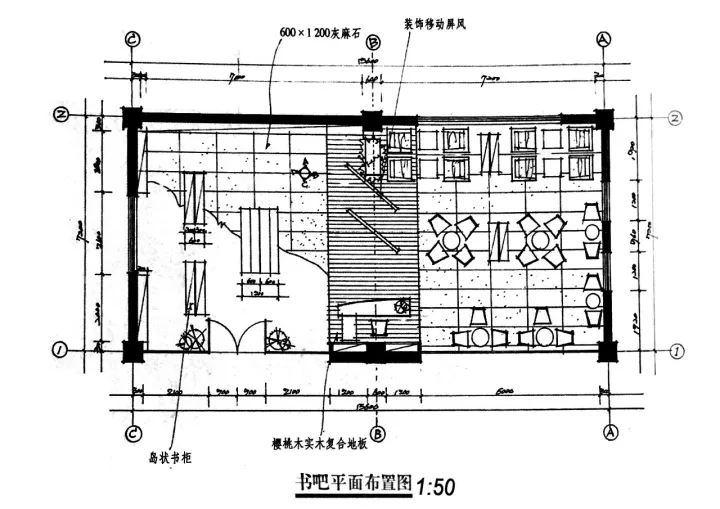 步骤 3:标出尺寸线,注意标的是轴间距。具体标注细节见上期环艺快题考前细节分析(一)。