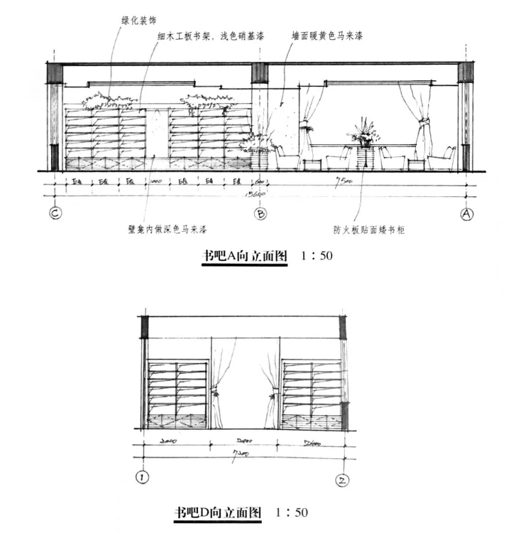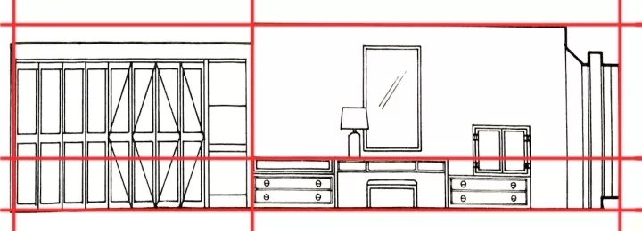 步骤 2:网格定出来后直接靠感觉画室内物体立面,加快画图速度,快题考试中立面图用最少的时间表达出设计元素。